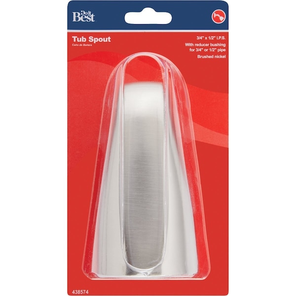 Do it Best bathtub spout. 11.0 GPM (gallons per minute) 3/4 I.P.S. with reducer bushing for 3/4 or 1/2 pipe. Brushed nickel finish.