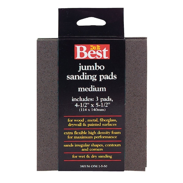 Aluminum oxide abrasive. Use on wood metal plastic drywall and painted surfaces. Conforms to different surface faces. Rinse clean and use again. Includes 3 pads per package.