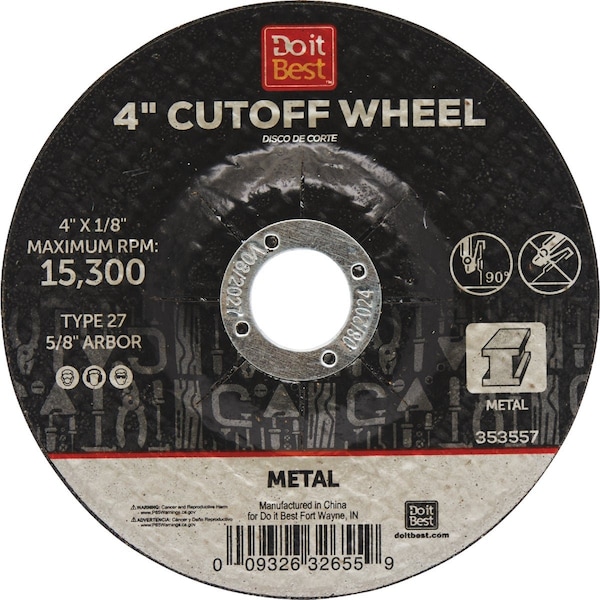 Type 27 4'' x 1/8'' x 5/8'' Metal Cut-Off Wheel
