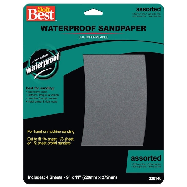 Waterproof 9''x11'' 600/440/320/220 Grit Assorted Grade Sandpaper, 4PK