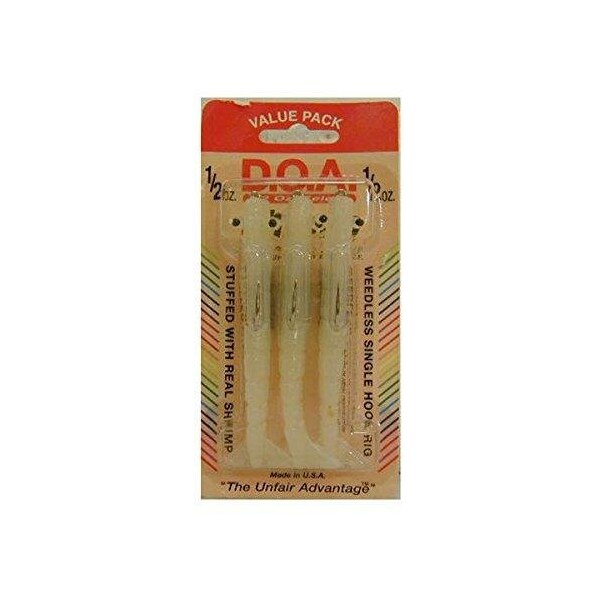 This lure became an immediate fishing success story because fishermen recognized that the unique design features found in all DOA Shrimp resulted in the creation of the world's most perfect artificial shrimp lures Unlike the clumsy imitations that preceded them, DOA Shrimp always have live shrimp looks and swimming action With their downward facing, vibration legs and consistent level drop rate DOA Shrimp Lures have successfully fooled almost every species of fish that feed on live shrimp Fishermen need only to present the lures with a natural slow retrieve to be insured of many memorable days on the water And don't forget if you limit yourself to using DOAShrimp Lures for only salt water action, you'll be missing lots of great fresh water fishing fun DOA FSH43P305 Shrimp Lure, 4 12 oz, Nite Glow,