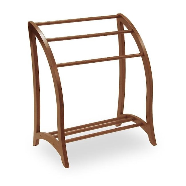 For over three decades Furniture has been a manufacturer and distributor of high quality pantryware and lifestyle furniture for the home. Specializing in solid wood has continually brought forth innovative products in combinations of solid wood and other various materials such as wrought iron aluminum steel marble and glass. Decorate in your style and display only the best quality today. Keep spare linens within reach. Rack holds 3 quilts or bath towels. Beautiful walnut finish easily coordinates with existing d?cor.Product Dimensions (WxDxH):30 x 20 x 36
