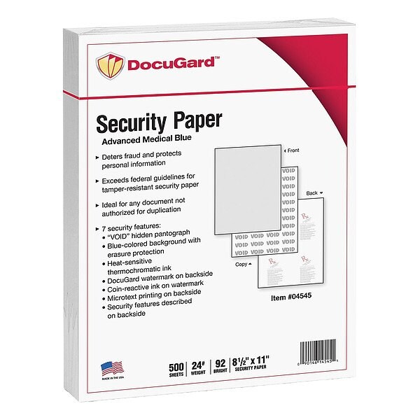 Meet/Exceeds Federal Guidelines for Tamper-Resistant Security Paper, Prevention for Unauthorized Copies and Safeguard