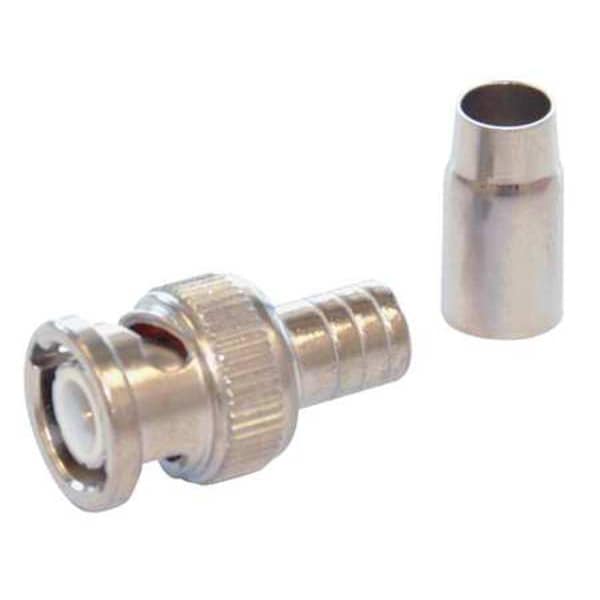 Coaxial Connector, Gender Male, Product Type Connector, Color Silver, Installation Method Crimp-On (2 Piece), Compatible Coaxial Cable Type RG-59, RG-62, Maximum Frequency 4 GHz, Maximum Impedance 75 ohm, Connector Type BNC, Finish Nickel-Plated, Resistance Properties Corrosion Resistant, Standards RoHS Compliant, Package Quantity 10
