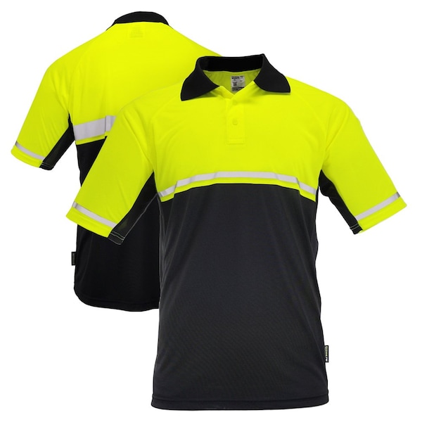 Safety Shirt, Enhaced Visibility, Polyester, HiVis Yellow/Black Bottom, XL