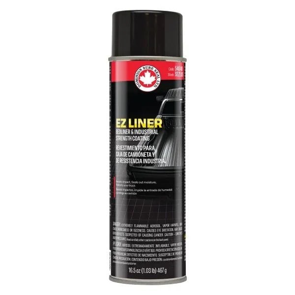 Convenient aerosol of our gallon kit (BEZLG) EZ Liner Bedliner. Suitable for trim work around the bed and touching up any tears, scratches and chips in liquid bedliners. Resists heavy impact, scratches, severe weather, rust and fading..Seals out moisture and corrosion. Seals out moisture and corrosion. Remains permanently flexible..Ultra chemical resistant....Remains permanently flexible..Ultra chemical resistant...