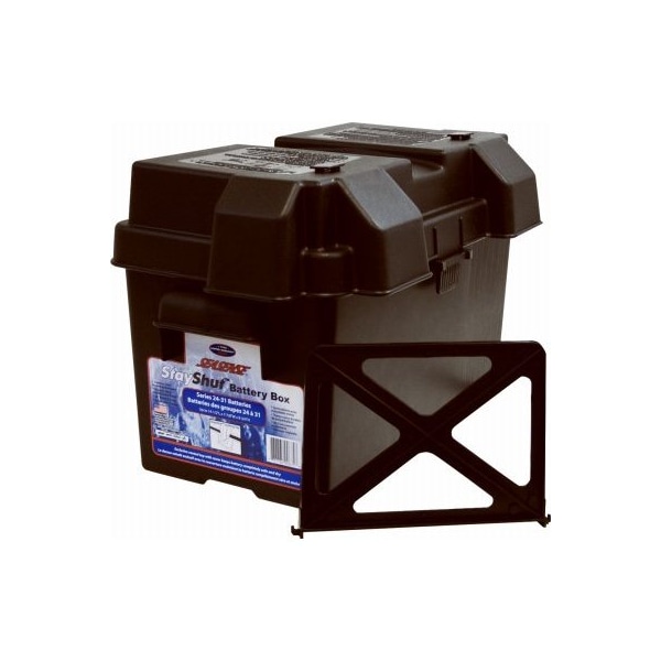 Universal Battery Box, With Adjustable Divider For Batteries Series 2431, Stainless Steel Mounting Hardware Included, Durable Polyethylene Frame, Battery Strap Included