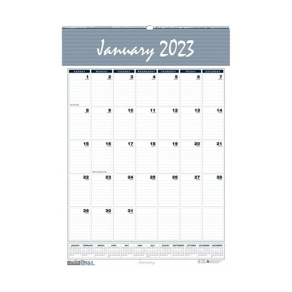 Ruled daily blocks keep notations neat. Full-year reference calendar aids in planning throughout the year. Neutral graphics match any dcor. Wirebound with a full chipboard backer and a sturdy wire hanger. Made entirely of recycled materials. Size: 8.5 x 11, Page Color/Theme: Blue/Gray, Edition Year: 2021, Calendar Term: 12-Month Jan-Dec.