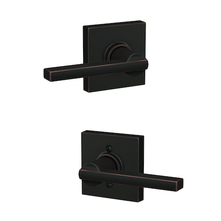 Latitude Lever with Collins Rose Passage Lock with 16080 Latch and 10027 Strike Aged Bronze Finish