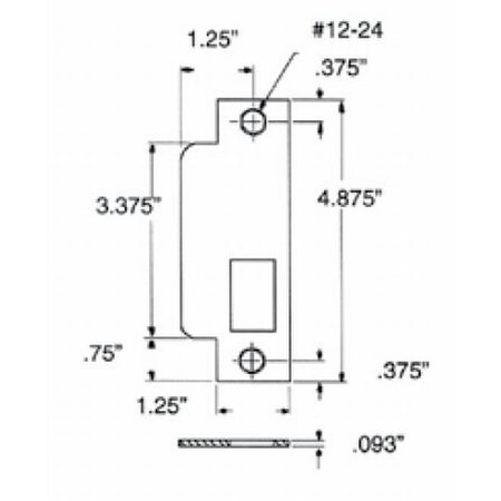 Strike Plate, 3-21/32 in L, 15/16 in W, Steel, Brass