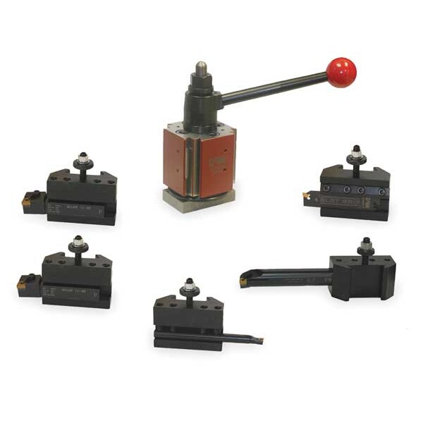 Tool Post and Holder Set, Number of Pieces 6, QITP50N, Includes (2) 3FGT6 Turning/Facing Tool Holders; 3FGF7 Tool Post; 3FGT7 Turning/Facing/Boring Tool Holder; 3FGT9 Heavy Duty Boring Bar Holder; 3FGU4 Reversible Cut-Off Tool Holder (Indexable Tooling and Inserts Not Included)