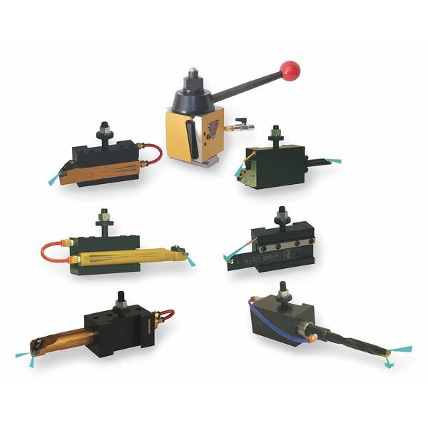 Tool Post & Holder Set, Number of Pieces 7, V35TC, Includes 3FGV6 Tool Post, 3FGX2 Turning/Facing Tool Holder, 3FGX3 Turning/Facing/Boring Tool Holder, 3FGX4 Boring Bar Holder, 3FGX7 Morse Taper Holder, 3FGX8 Reversible Cut-Off Tool Holder And 3FGX9 OD/ID Tool Holder