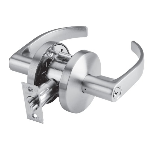 Dorma C500 Series Door Lever Locksets. Grade 2 Cylindrical Lock, 25-Exit, Blank Plate x Lever, LC-Lever, C-Rose, Satin Chrome, 2-3/4 Inch Backset