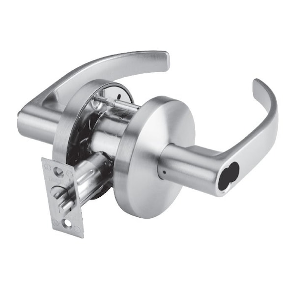 Dorma C500 Series Door Lever Locksets. Grade 2 Cylindrical Lock, 70-Classroom, LC-Lever, Satin Chrome, 2-3/4 Inch Backset, SFIC Less Core-Small format Prep