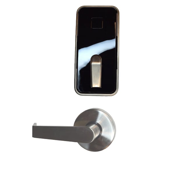 Dormakaba Saffire Electronic LX-I Interconnect RFID Lockset; 3 Hour Fire Rating; Troy Lever; Bluetooth BLE; ELO; LH or RHR; 4in Center to Center; 2-3/4in Square Corner Backset; T Strike; Satin Chrome with Black Facia Finish