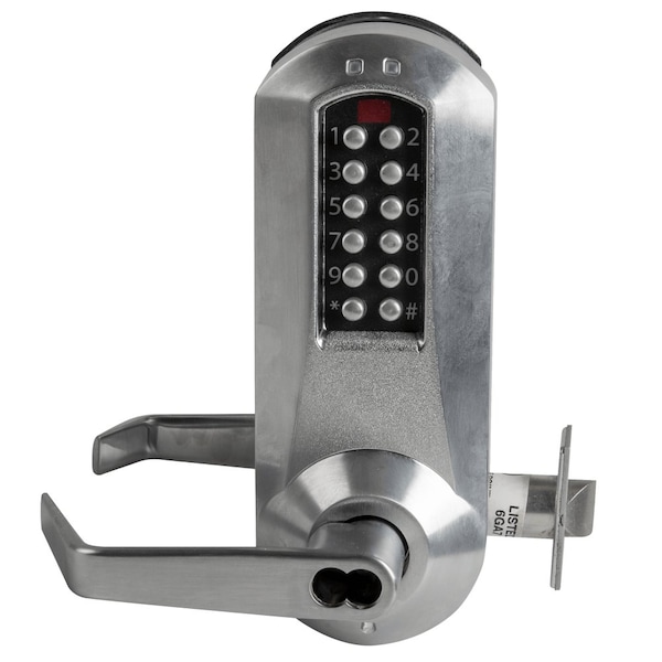 E-Plex 5000 Cylindrical Lock with Privacy, Winston Lever, 100 Access Codes, 3,000 Audit Events, Medeco/Yale/ASSA/Abloy LFIC Prep, Less Core, 2-3/4-in Backset, 1/2-in Throw, Satin Chrome
