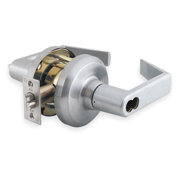 Cylindrical Lever, Sierra Style, Satin Chrome Finish, Function Entry, Grade 1, Material Zinc, For Door Thickness 2 In., Backset 2 3/4 In., Front Size Dimension 1 1/8 In., Crossbore Size 2 1/8 In., Keying Different, Number of Keys 2, Pins 6, Required Door Thickness 2, Keyway Type Best F, Standards ANSI/BHMA A156.2 GRADE 1, Fire Rated 3 Hours, For Use With Small Format Interchangeable Core, Includes Hardware