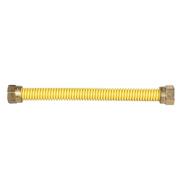 Gas Connector, Hose Inside Dia. 1/2 in, Hose Outside Dia. 5/8 in, Hose Length 22 in, Hose Color Yellow, Hose Tube Material 304 Stainless Steel, Hose Cover Material Polymer, Max. Working Pressure @ 70 F 0.5 psi, Temp. Range -40 Degrees to 350 Degrees F, Standards CSA Certified, Hose Fitting A Material Carbon Steel, Hose Fitting B Material Carbon Steel, Hose Fitting A Type FIP, Hose Fitting B Type FIP, Hose Fitting A Size 3/8 in, Hose Fitting B Size 3/8 in, Hose Configuration Coupled Assembly