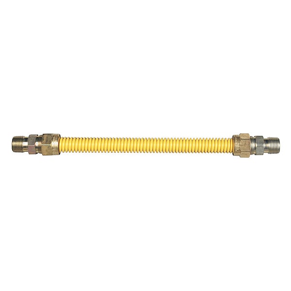 Gas Connector, Hose Inside Dia. 3/8 in, Hose Outside Dia. 1/2 in, Hose Length 4 ft, Hose Color Yellow, Hose Tube Material 304 Stainless Steel, Hose Cover Material Polymer, Max. Working Pressure @ 70 F 0.5 psi, Temp. Range -40 Degrees to 350 Degrees F, Standards CSA Certified, Hose Fitting A Material Carbon Steel, Hose Fitting B Material Carbon Steel, Hose Fitting A Type MIP, Hose Fitting B Type MIP, Hose Fitting A Size 1/2 in, Hose Fitting B Size 1/2 in, Hose Configuration Coupled Assembly