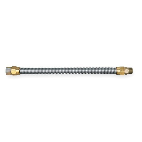 Gas Connector, Hose Inside Dia. 3/4 in, Hose Outside Dia. 1 in, Hose Length 24 in, Hose Color Silver, Hose Tube Material 304 Stainless Steel, Max. Working Pressure @ 70 F 0.5 psi, Temp. Range -40 Degrees to 350 Degrees F, Standards ANSI Z21.15, ANSI Z21.18/CSA 9.1, ANSI Z21.24, ANSI Z21.41, ANSI Z21.69, ANSI Z21.90, ANSI/UL 567, CSA 6.16, CSA 6.24. CSA 6.9, CSA 6.3, Hose Fitting A Material 304 Stainless Steel, Hose Fitting B Material 304 Stainless Steel, Hose Fitting A Type MIP