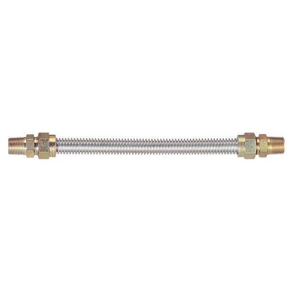 Gas Connector, Hose Inside Dia. 1/2 in, Hose Outside Dia. 5/8 in, Hose Length 24 in, Hose Color Silver, Hose Tube Material 304 Stainless Steel, Max. Working Pressure @ 70 F 0.5 psi, Temp. Range -40 Degrees to 350 Degrees F, Standards ANSI Z21.15, ANSI Z21.18/CSA 9.1, ANSI Z21.24, ANSI Z21.41, ANSI Z21.69, ANSI Z21.90, ANSI/UL 567, CSA 6.16, CSA 6.24. CSA 6.9, CSA 6.3, Hose Fitting A Material 304 Stainless Steel, Hose Fitting B Material 304 Stainless Steel, Hose Fitting A Type MIP