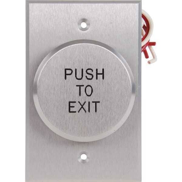 Exit Push Button, Type Single Gang, Switch Action Pneumatic, Material Aluminum, Finish Clear Anodized, Depth 1/2 in, Height 4 1/2 in, Width 3 in, Button Color Silver, Color Gray, Button Dia. 2-1/2 in, Rating 10A @ 125V AC, Input Voltage 24V DC, Output DPST Relay, Amps AC 6, Event Audit Trail No, Keypad No, Cylinder No, Standards MEA Approved, UL Listed, For Use With Access Controls, Exit Device Type Not Applicable, ADA Compliant Yes