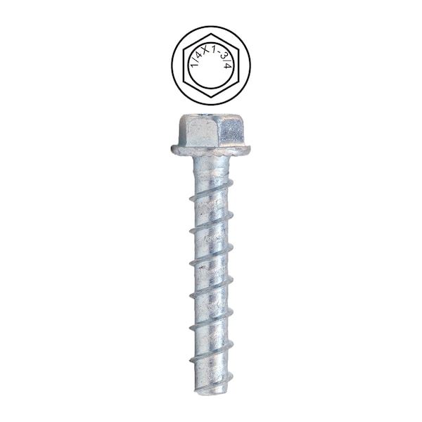 1/4in x 1-3/4in Hex Head Concrete Screw Bolt, 100PK