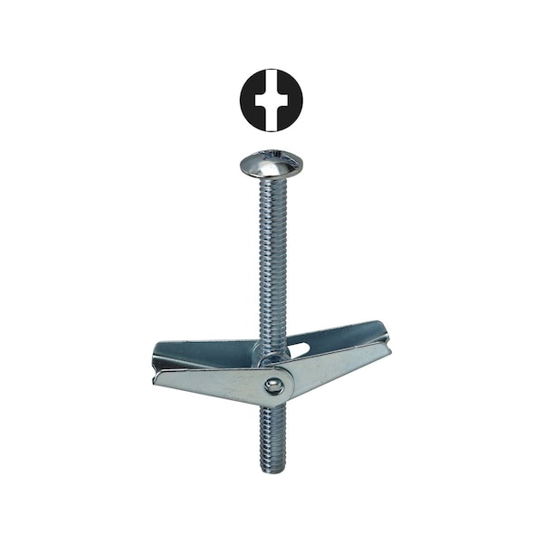 3/8in x 4in Phillips/Slotted Mushroom Head Toggle Bolt, 50PK