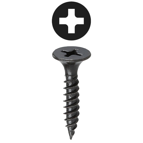 Drywall Screw, #6 x 1 in, Carbon Steel, Flat Head Phillips Drive, 500 PK