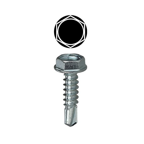 Self Drilling Screw Kit, Zinc Plated Finish, Carbon Steel, Hex Washer Head Hex Drive