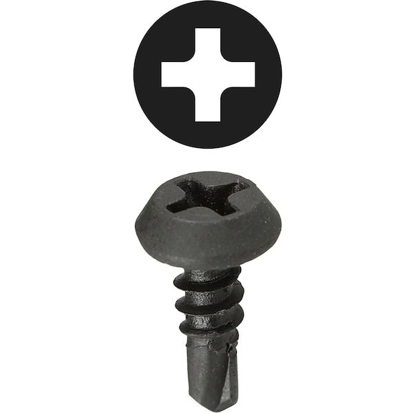 Sheet Metal Screw, #7 x 7/16 in, Black Oxide Steel Pan Head Phillips Drive, 100 PK