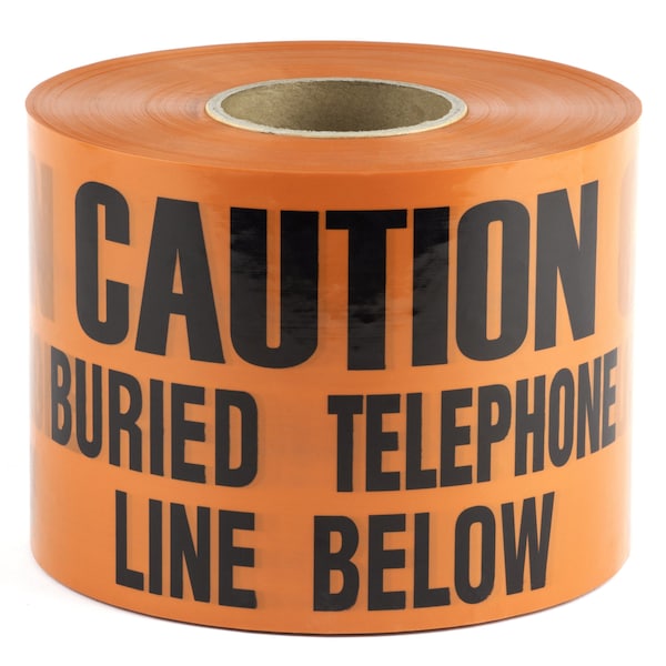 Underground Warning Tape, Caution Buried Telephone Line Below, Orange, Polyethylene