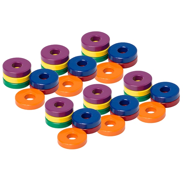 Center-hole design makes them easy to grab and remove. Assorted colors. Measure 1.14"D x .26"T each. Each pack includes 6 magnets. Sold as 6 packs for a total of 36 magnets.