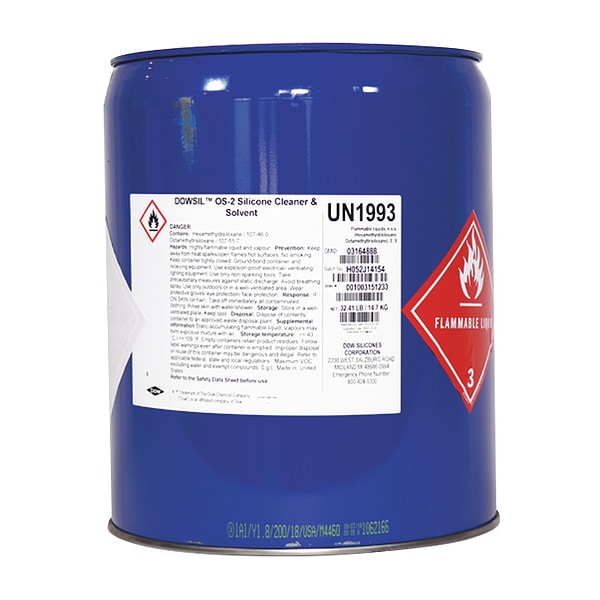 Cleaner Sealant, Container Size 14.7 kg, Container Type Pail, Cured Color Blue, Product Type Surface Cleaner, Specific Gravity 0.78, Series OS-2, Minimum Application Temperature -40 Degrees F, Maximum Application Temperature 140 Degrees F, Maximum Performance Temperature 350 Degrees F, Base Silicone, Dry Time 24 hr, Minimum Performance Temperature -75 Degrees F