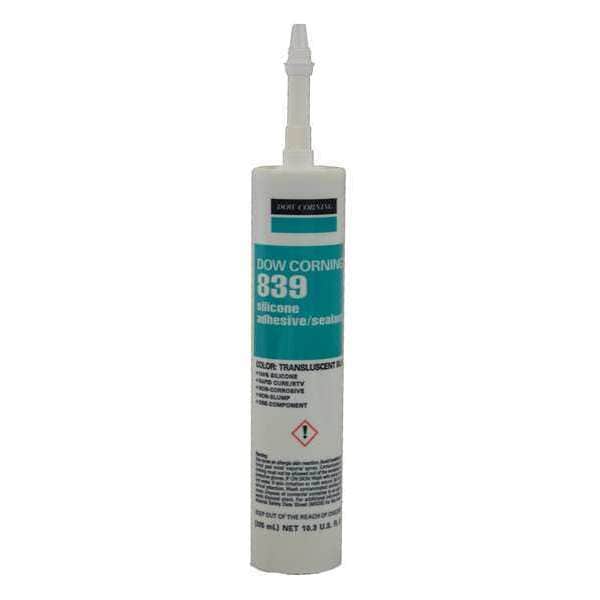 Silicone Adhesive Sealant, 10 oz, Cartridge, White, Silicone Base, 839