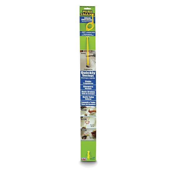 Drain Cleaning Tool, Product Type Drain Cleaning Tool, Cable Length 26 in, End Type Included Barbed, Cable Feed Type Manual, Minimum Pipe Size 1 in, Maximum Pipe Size 2 in, Drum Material Plastic Resin, Compatible Fixture Type Bathtubs, Showers, Sinks