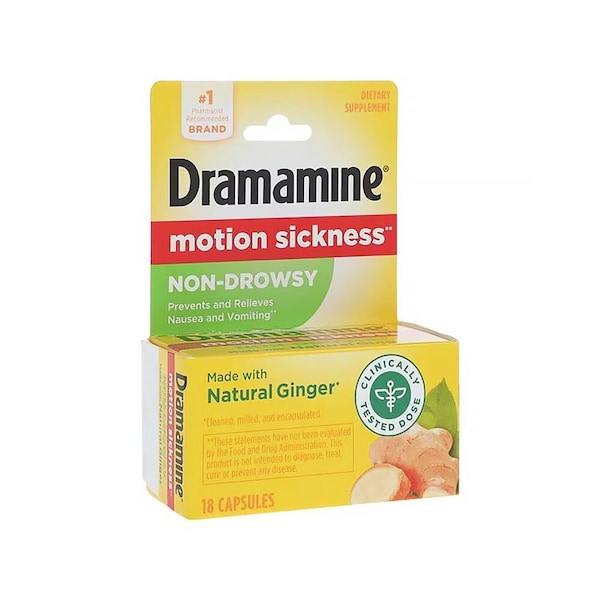 Dramamine Naturals Non-Drowsy Capsules Ginger 18/BoxProducts are not always manufacturer specific. Actual product appearance may differ from website image.