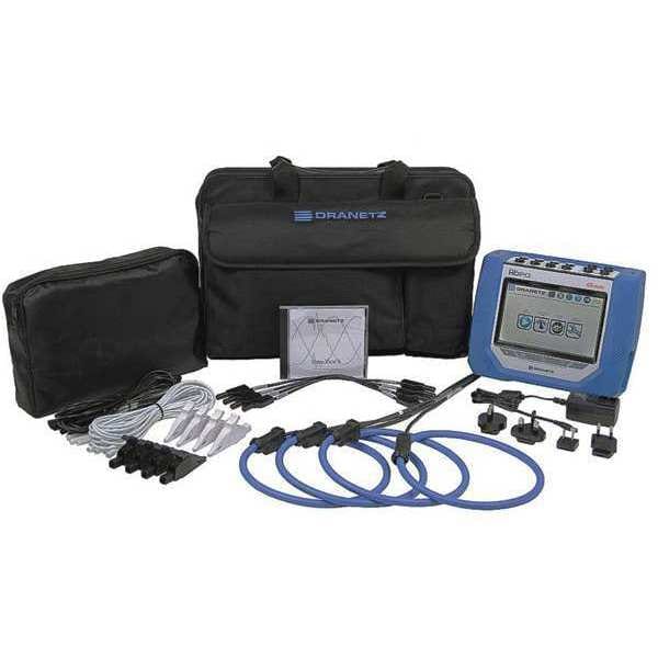 Power Quality Analyzer Kit, Calibration Certificate NIST, Current Channels 4, Includes (1) DRANFLEX3000XLB24 FLEX CT, (1) DRANFLEX3003XLB24 3 Phase FLEX CT, AC Power Supply, Dran-View Ent, Dranetz HDPQ Guide, Soft Carry Case, Voltage Cable Set, Peak Capture Yes, Power Factor 0 to 1, Voltage Channels 4, Calibration Frequency 45 to 65 Hz, Communication Protocol Ethernet, Optional Bluetooth via USB Adapter, USB, VNC Remote Control, Wi-Fi, Crest Factor I=3, V=2, Current Accuracy +/-0.1 Percent