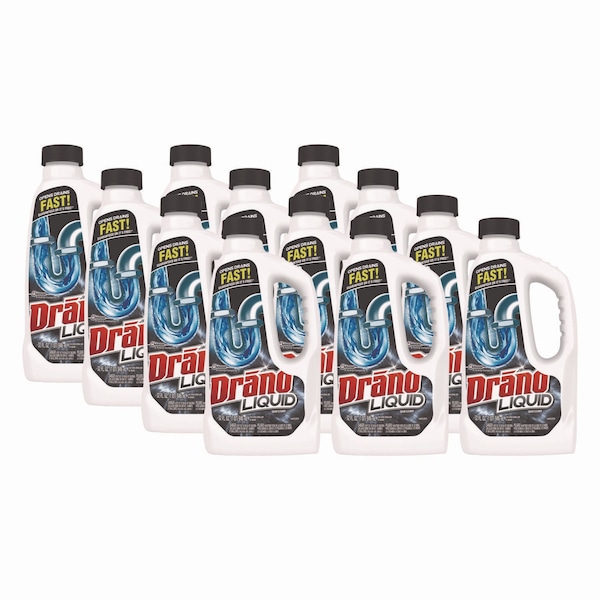 Drano® Liquid Drain Cleaner, 32oz Safety Cap Bottle, 12/Carton