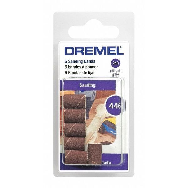 Sanding Band, Sanding Bit Style Band, Mandrel Type Standard Screw, Drum Diameter 1/4 in, Drum Length 1/2 in, Grit 240, Abrasive Material Aluminum Oxide, Material Application Fiberglass, Metal, Wood, Max. Speed 35,000 RPM, Tool Brand Dremel, Package Quantity 5