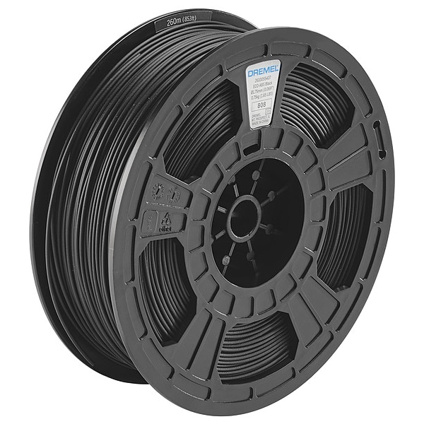 3D Printing Filament, ABS, Black, Diameter 1.75 mm, 0.75 kg, Max. Extrude Temperature 500 Degrees F (260 Degrees C), Color Family Blacks, For Use With Dremel 3D Printers, Min. Printed Part Temperature -22 Degrees F (-30 Degrees C), Max. Printed Part Temperature 150 Degrees F (68 Degrees C), Min. Extrude Temperature 428 Degrees F (220 Degrees C), Durometer Not Applicable