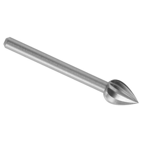 Carving Bit, Rotary Tool Accessory Type Carving Bit, Bit Material High Speed Steel, Max. Speed 35,000 RPM, Shank Diameter 1/8 in, Mount Type Mounted, Overall Length 1 1/2 in, Burr Diameter 1/4 in, Head Length 3/8 in, Head Width 1/4 in, Material Application Plastic, Soft Metal, Wood