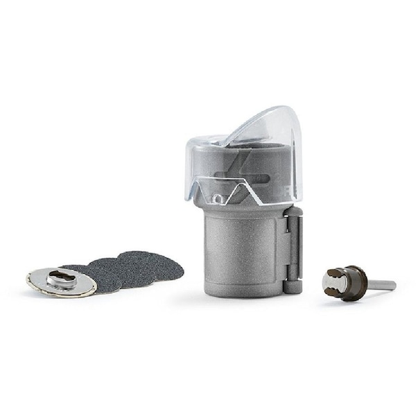 Dremel AT01-PGK Pet Grooming Nail Guard The use of scissor and guillotine-type clippers apply pressure and pinch the nail, which can be uncomfortable for pet toes and feet. The Dremel pet grooming nail guard attachment allows you to quickly, easily and gently trim your petfts nails. The Dremel pet grooming nail guard positions pet nails at a 45-degree angle of cut. The clear cap allows easy viewing and is adjustable for use on other Dremel rotary tools. The nail guard features a hinged design so the housing can be opened for easy cleaning and assembly. With easy-to-follow instructions included in the kit, youftll be grooming pet nails in minutes. Features & Benefits: - Worldfts first 45 degree paw guide assures the correct angle for success - Nail dust and fur guard - Clear cap for easy viewing - Simple hinge for easy cleaning and assembly - Compatible with Dremel tools: 3000, 4000, 4300, 7300-PGT, 7700, 8100, 8220