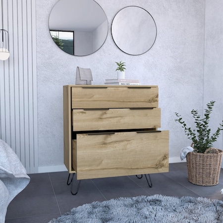 Utopia 63.38 Wide Dresser with 3 Drawers in Off White and Maple Cream