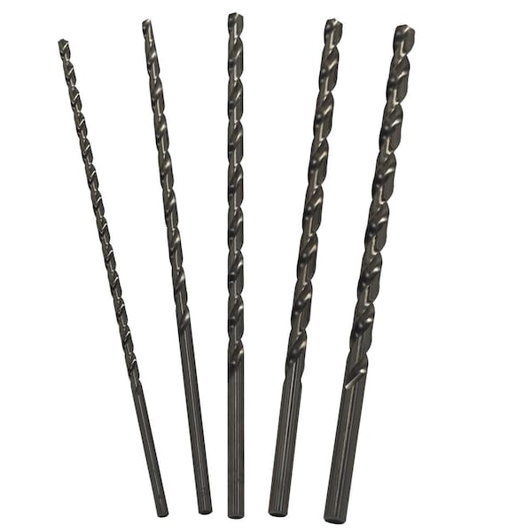 1/4"-1/2"x12" 5Pc. HSS Extra Long Drill Bit Set Plastic Case Pouch