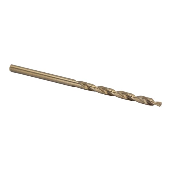Stepped Point Cobalt Drill Bits start easier, drill faster, increase lifespan and reduce heat compared to standard drill bits. They can be used to enlarge existing holes or to create new, smoother holes in a wide range of materials such as acrylics, steel, metal, brass and other hard metals. These drills are jobberstandard length have a 135 degree split point tip and a round shank.Product Specs: Size: 1/8, Material: Cobalt, Finish: Gold, Flute Length: 1-5/8, Overall Length: 2-3/4, Shank Type: Round, Style: Jobber, Cutting Angle: 135, Point Type: Stepped, Number of Flutes: 2, Cutting Direction: Right Hand, Decimal Equivalent: 0.125, Metric Equivalent: 3.175mm