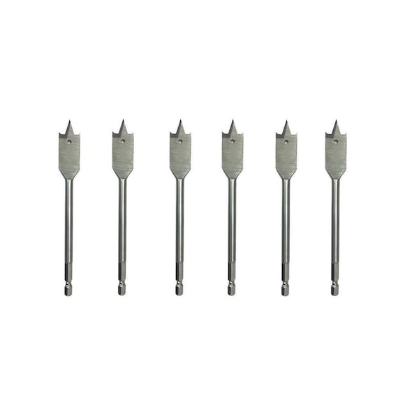 Set comes with 6 pieces 3/8", 1/2", 5/8", 3/4", 7/8" and 1". Carbon spade drill bits are specialized tools used for creating large, flat-bottomed holes in wood. Featuring a wide, flat blade with sharp cutting spurs, these bits are designed to quickly remove material and produce clean, precise holes. The carbon steel construction allows for efficient cutting and long-lasting performance in soft and hardwoods. Each bit has a center point for accurate positioning and control, along with a hex shank that reduces slipping during drilling. Ideal for applications such as boring holes for cables, pipes, or hardware installation.