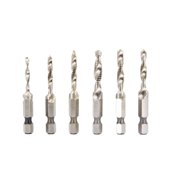 6 Piece Drill/Tap/Countersink Bit Set, Metric Sizes, 1/4'' Quick Change Hex Shank