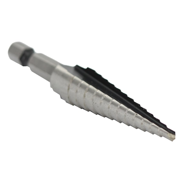 No 1 HSS Quick Change Hex Shank Step Drill Bit (1/8"- 1/2 by 1/32")