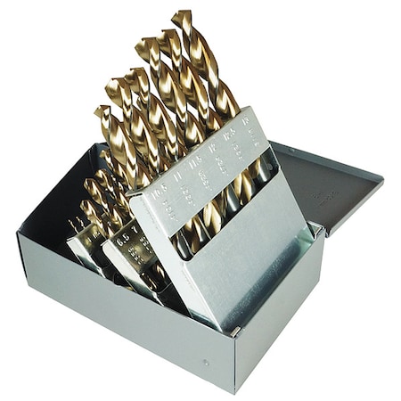 25PC 1mm-13mmx.5mm HSS 135 Degree Heavy-Duty Parabolic Jobber Drill Set Cle-Line 1872 Black & Gold